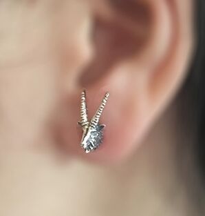 Goat Rams Head Stud Earrings - Exquisitely crafted with high quality Metal and enhanced with black tones which brings out the beautiful embossed ethnic detailing. It is a great emblem that gives a...