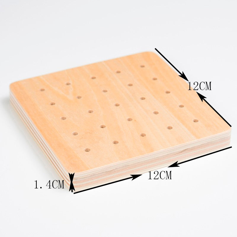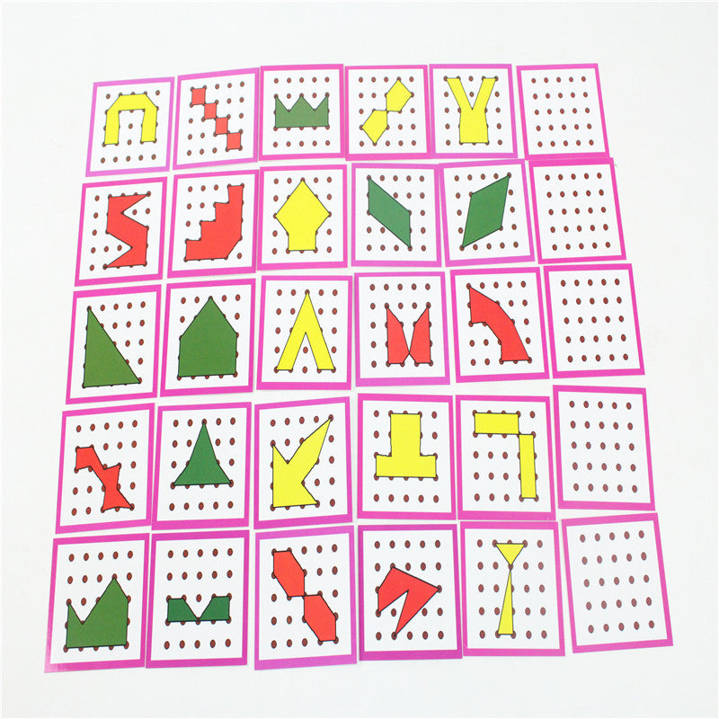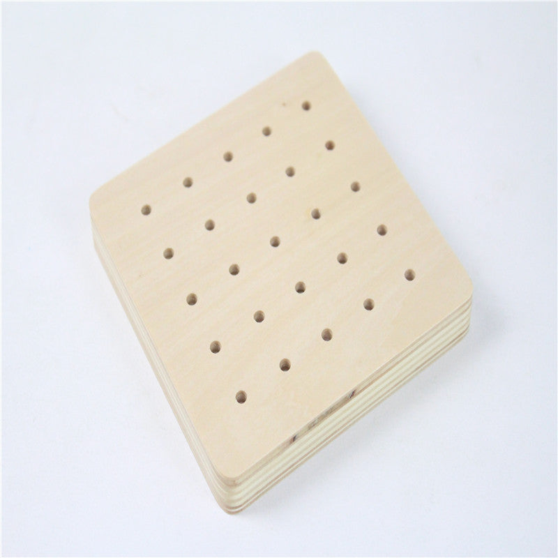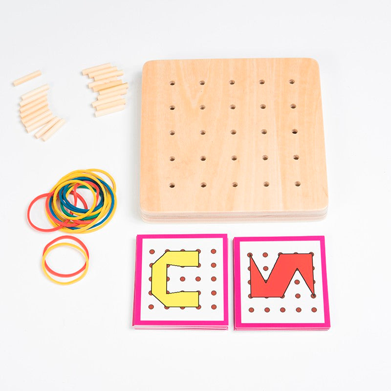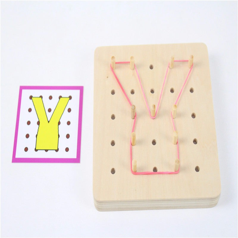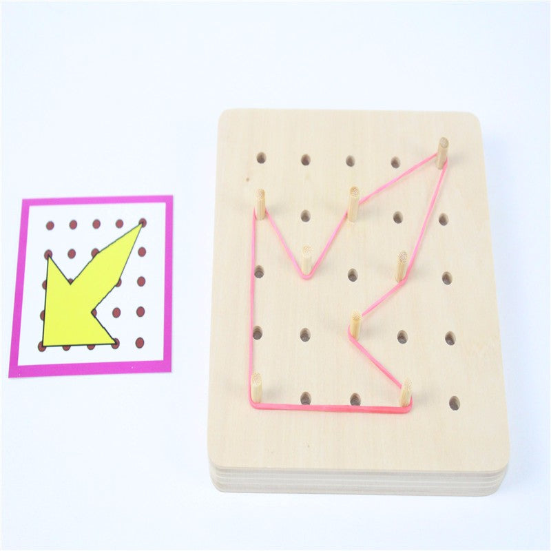 Train kids ability to use hand and enhance creativity.Included: 1 board, around 20 wood nails, around 20+5 cards, around 15 rubber tiesMaterial: WoodWarning: Small PartsAge Range: 2-4 Years