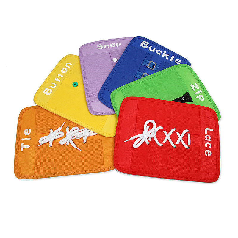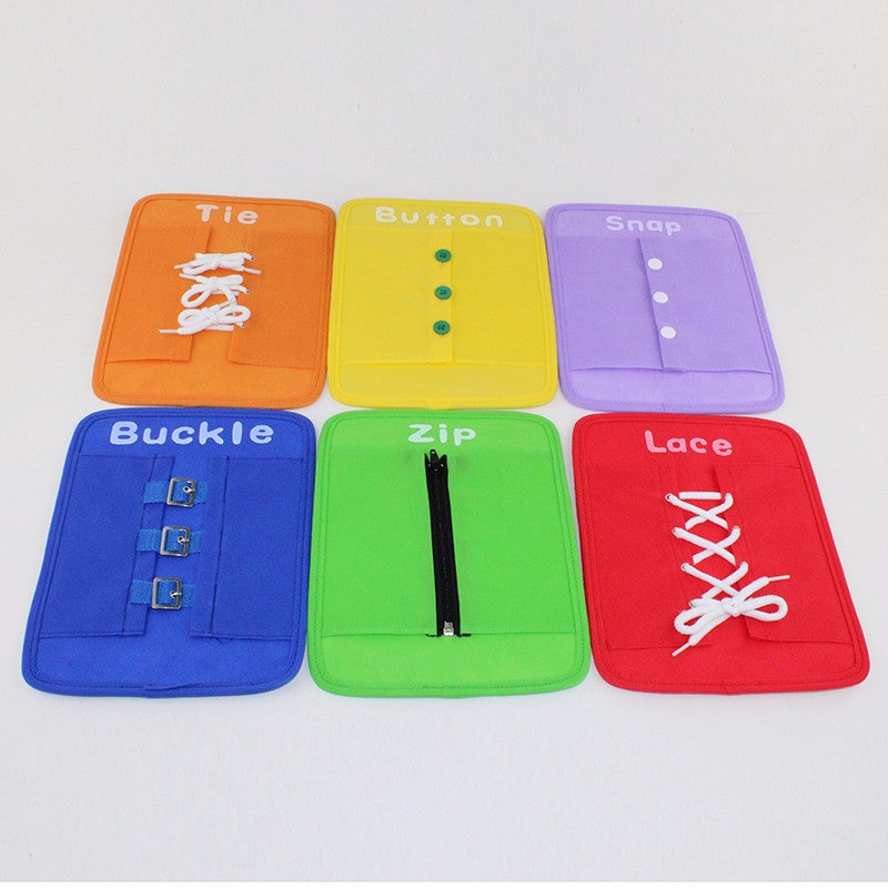 The purpose of this material is to teach child Zip Snap Button Buckle Lace Tie ManipulativesSize: 27cm*20cmWarning: Small PartsAge Range: 2-4 YearsMaterial: Cloth