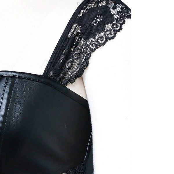 Sexy Gothic Corset Faux Leather & Lace Burlesque