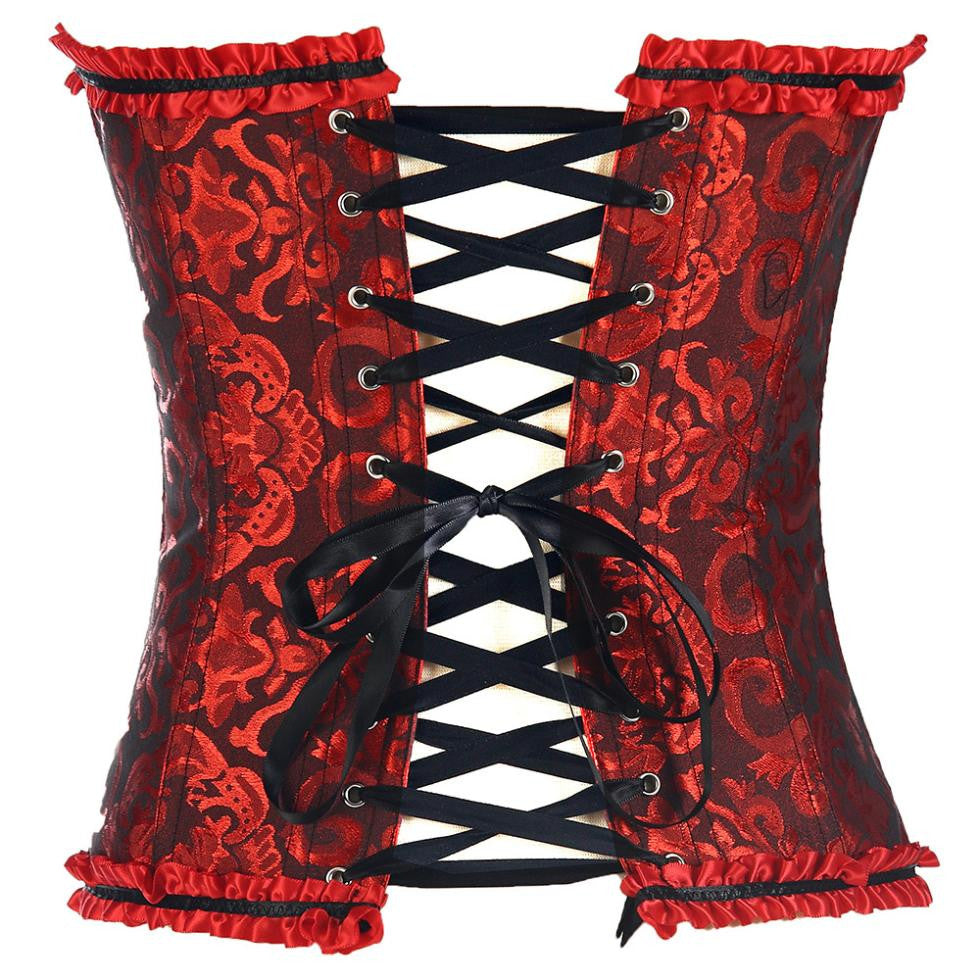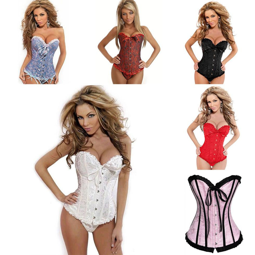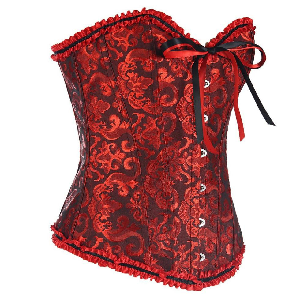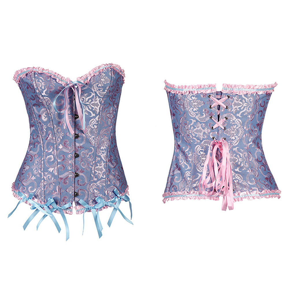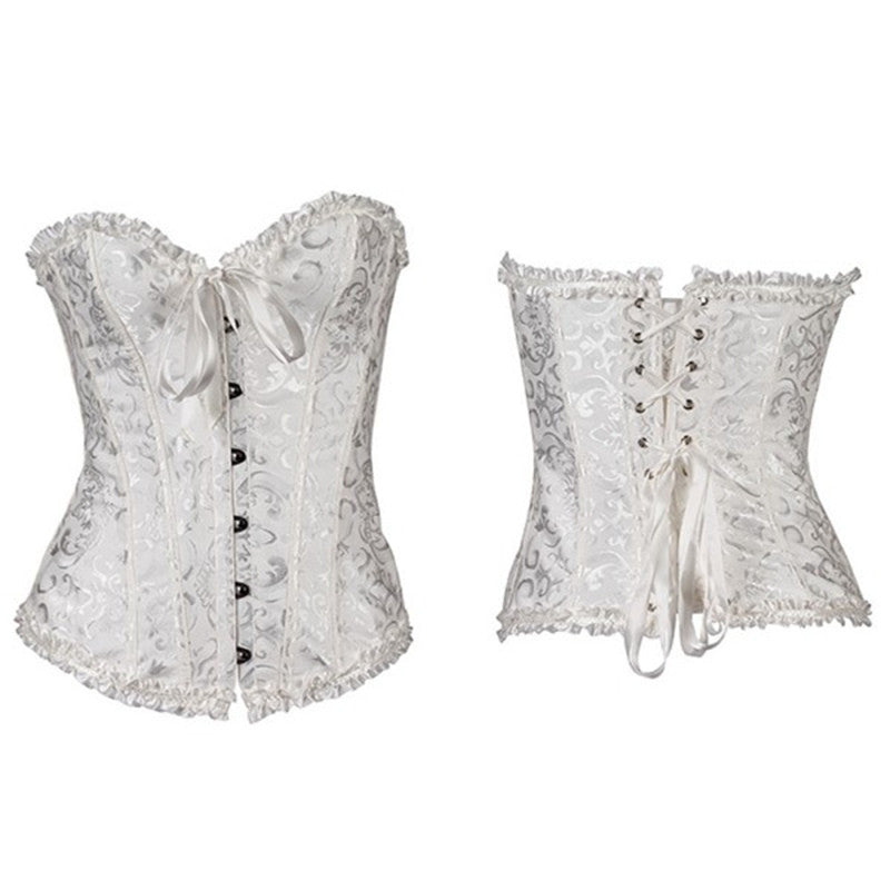 Women Sexy Satin Corset Brocade Floral Bustier Top Lace
