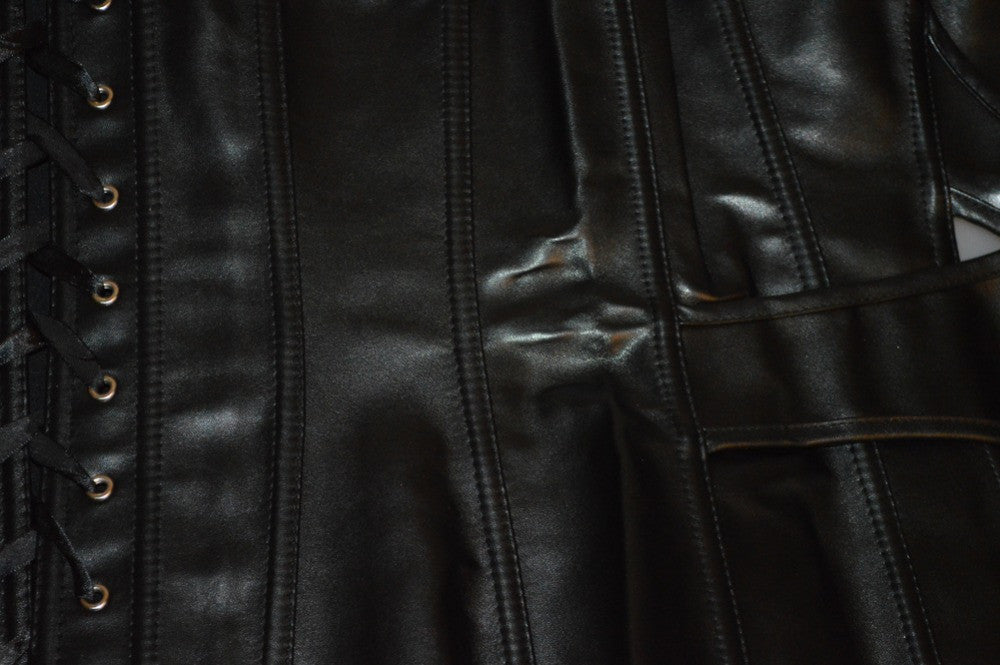 Item Type: Bustiers & CorsetsDecoration: AppliquesMaterial: Polyester,Spandex,Synthetic LeatherMaterial Composition: 90%Polyester ,10%Spandex ,80% Leather