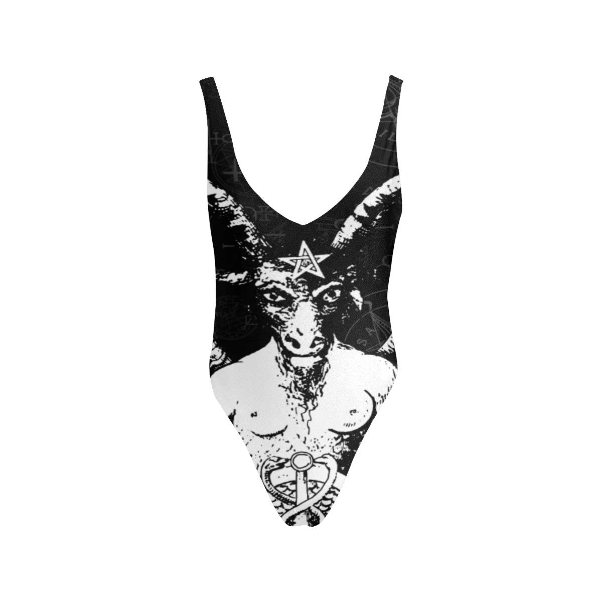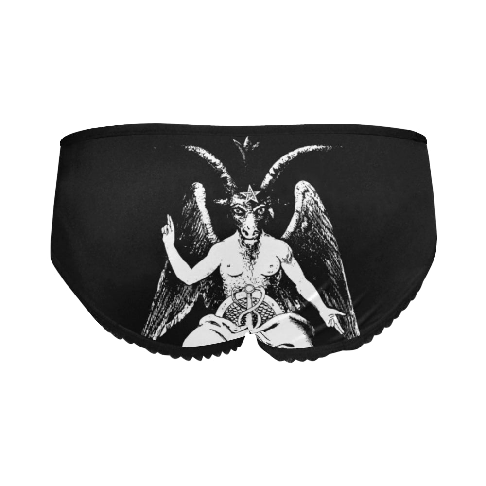 Women's Baphomet High-cut Briefs (Model H14) 92% Polyester, 8% spandex, comfort, breathable and lightweight. Two-sided fleece, super soft to wear. Size: XS, S, M, L,XL, XXL. Machine washable, hand wash...