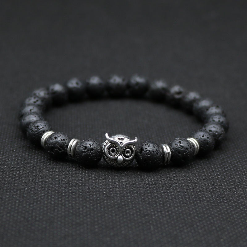 Owl head Lava Rock stone energy bracelet