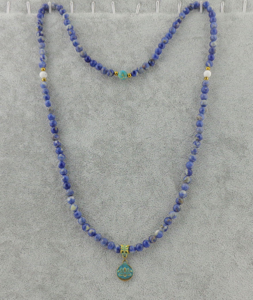 Yoga Natural sodalite 108 Mala Beads with lotus Necklace Strands