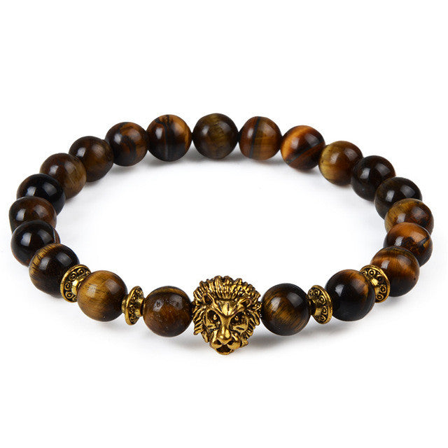 Leopard Tiger Eye, Lion Head, Owl Buddha, Charm Natural Stone Bracelet