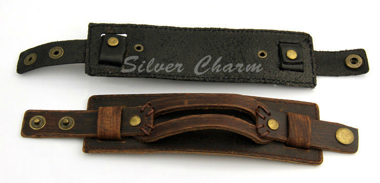 Leather Cuff Double Wide Bracelet and Rope Bangles