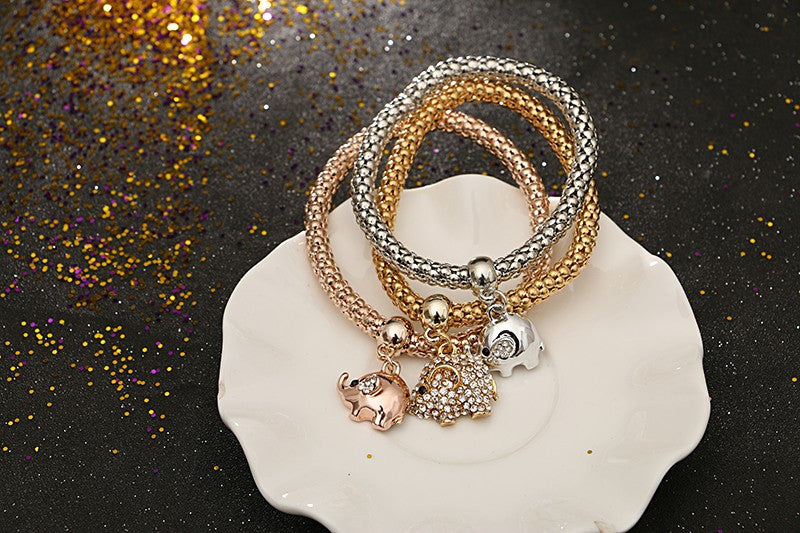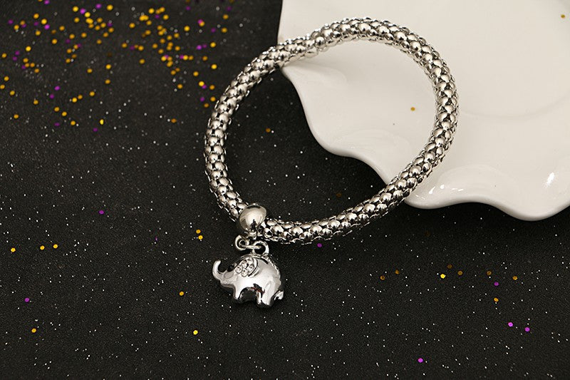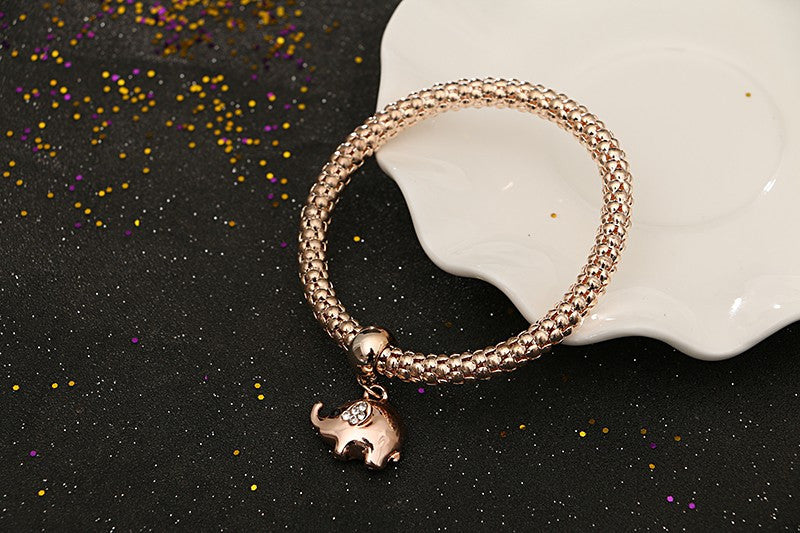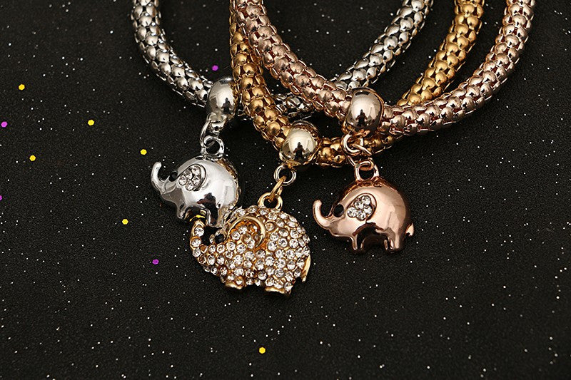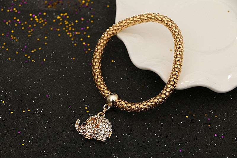 Vintage Gold Plated Multilayer Bangles Charms Elastic Crystal Elephant Pendant