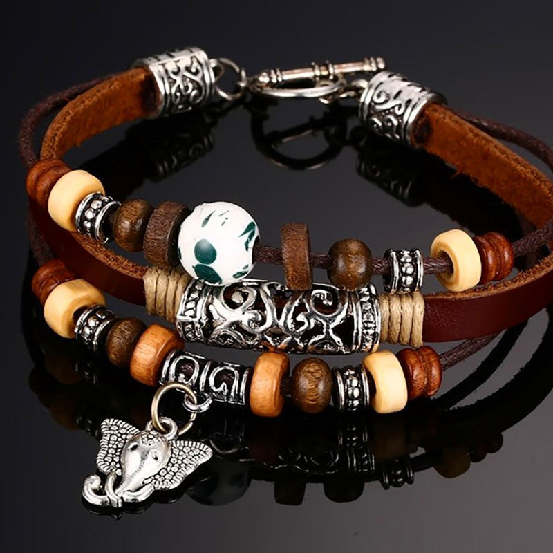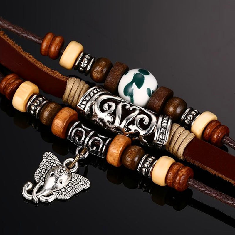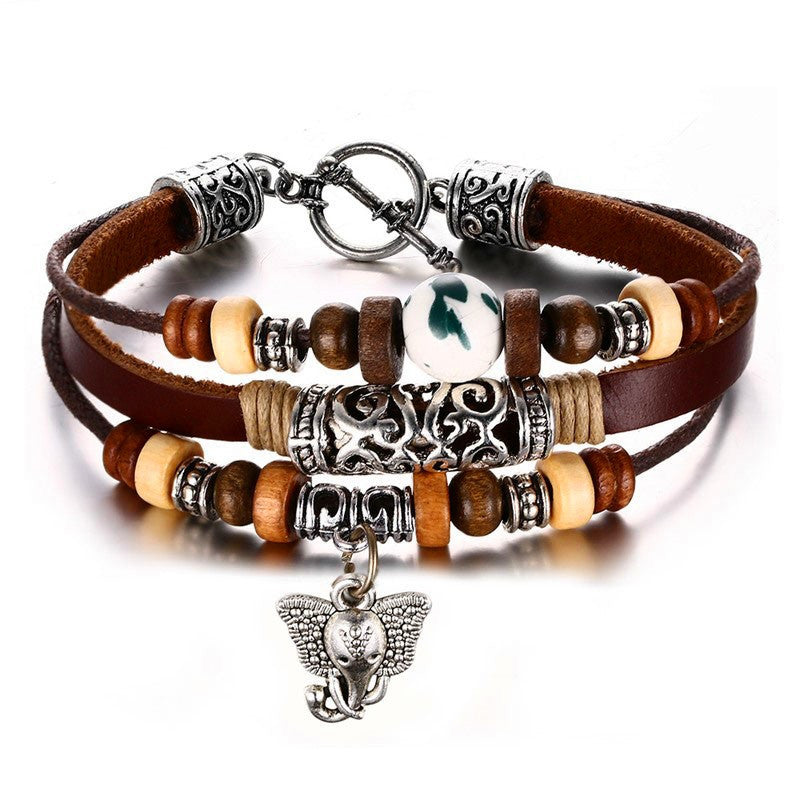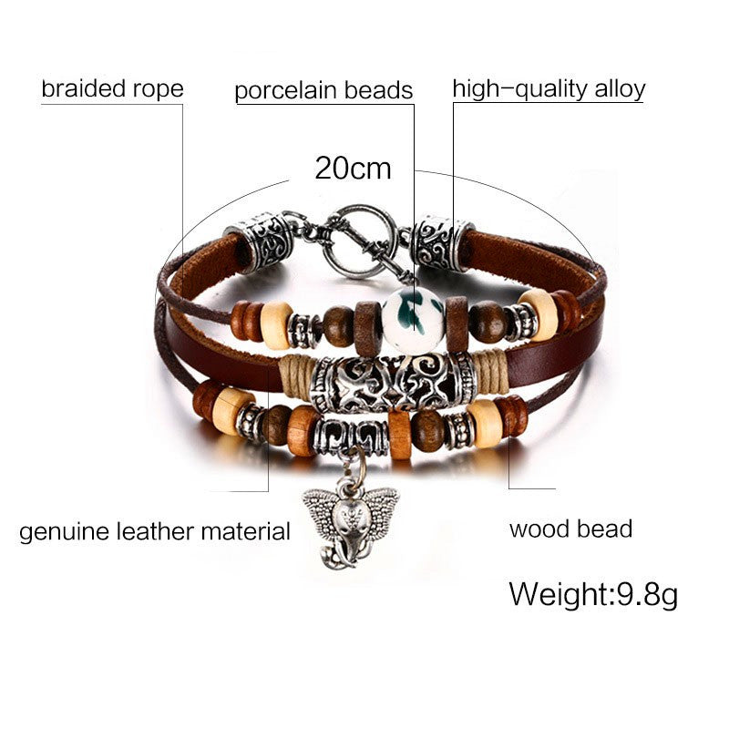 Vintage Elephant Leather Bracelet