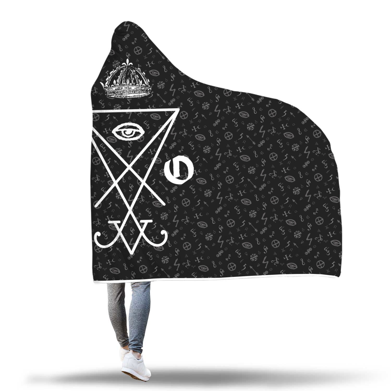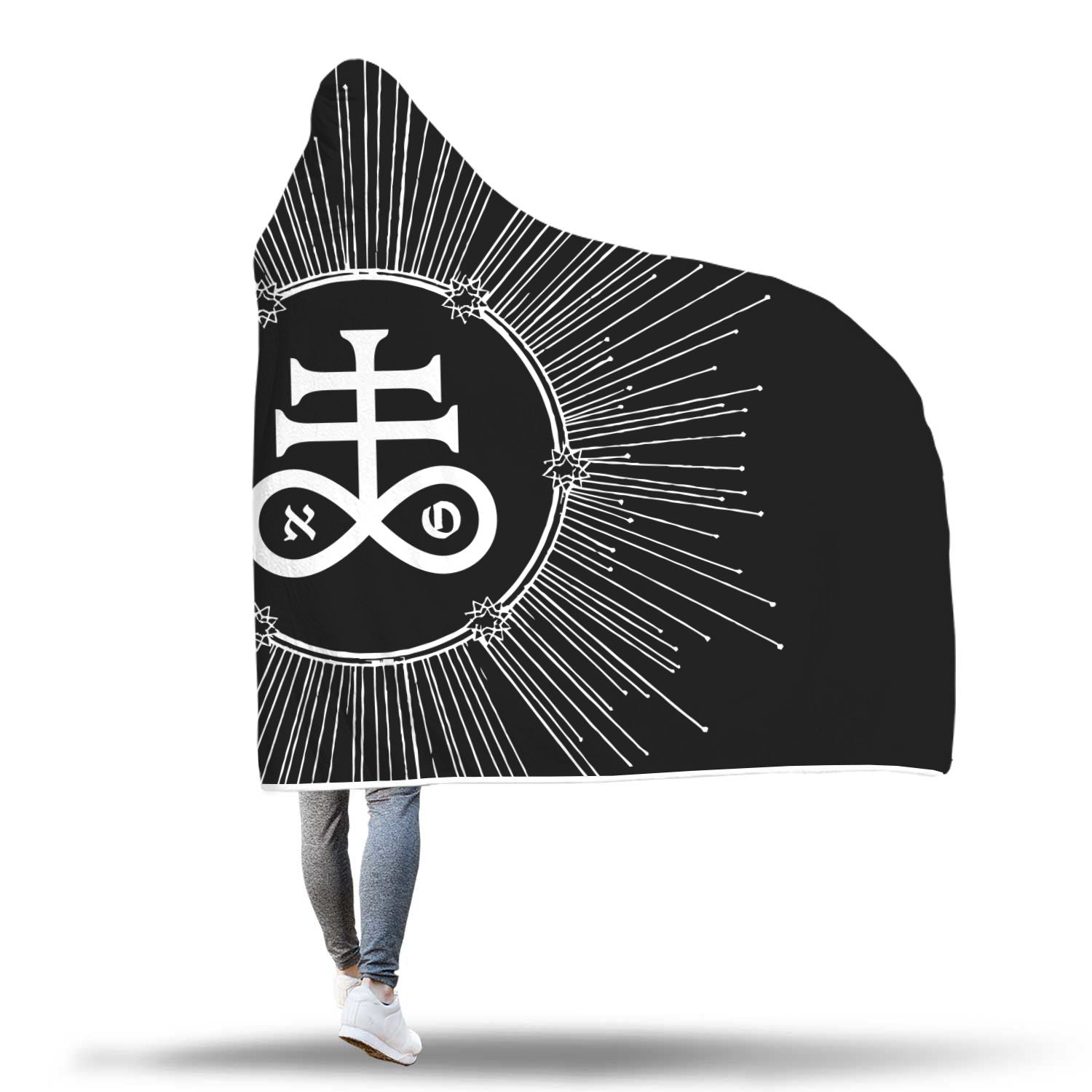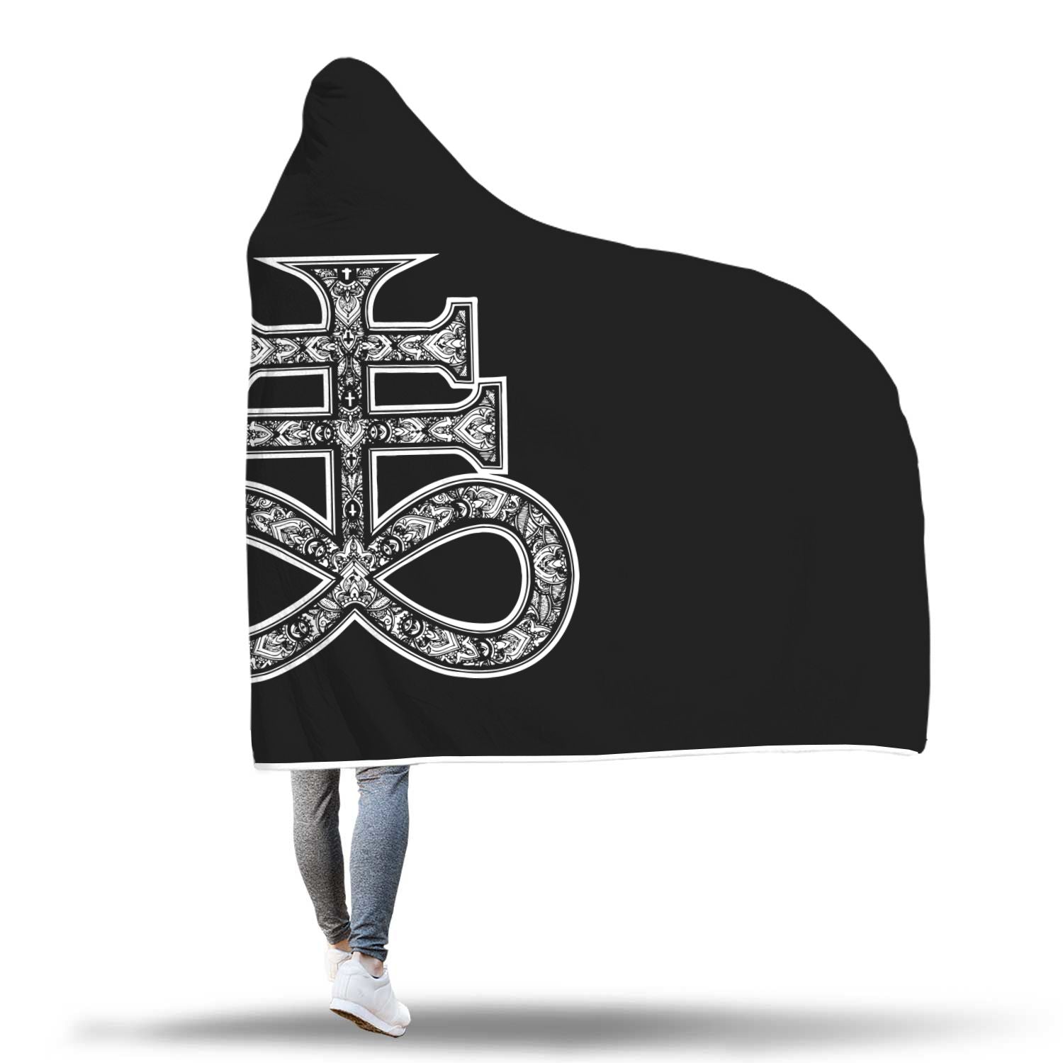 The Leviathan Cross hooded blanket. Party? Ceremony? woods? AVE SATANAS! Enhanced print quality brings out the extra details and extremely vibrant artwork. Printed using Sublimation... Each one is uniquely crafted...