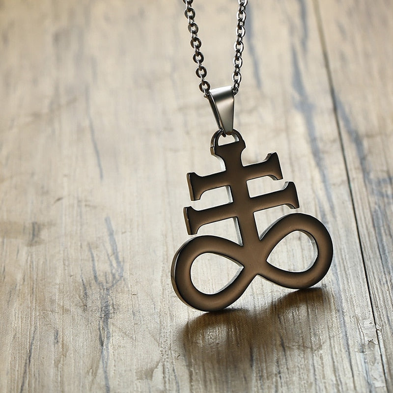 The Double cross symbolizes protection and balance between male and female. The infinity sign means eternal rest and happiness. In Alchemy, the Leviathan's cross is a symbol for sulfur, which is one the three essential elements of nature. Leviathan's direction is west. Being one with nature and the embracing eternal happiness and rest