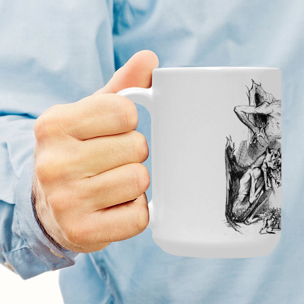 Devil Plus-Size Mug (15 OZ) 15 Oz. Designed for daily use, perfect for coffee, tea, hot cocoa, soup and more. Classical white mug, solid color will easily mix and match with...