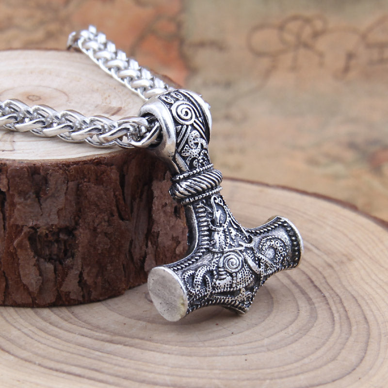 Mjölnir, the hammer of Thor, decorated with one of Odin's all-seeing ravens. A replica of the Schonenhammer, one of the most famous finds from the Viking Age, is a beautiful,...