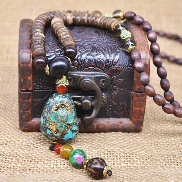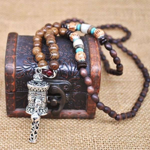 Handmade Wood Beads Bohemian Mala Pendant Necklace Metirial: Metal with antique silver Plated Plating: Antique Gold/ Tibetan Silver Plated ENVIRONMENTAL STANDARDS: Europe & Nickel, Lead, Cadmium free