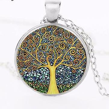 Art Picture Glass Cabochon Dome Necklace - Tree of lifeNecklace Type: Pendant NecklacesPendant Size: 25mmweight: 20.0gLength: 50cmMetal Color: Plated bronze,Silver Plated,BlackType of Necklace: Chain & PendantEndant Shape: 25MM Cabochon...