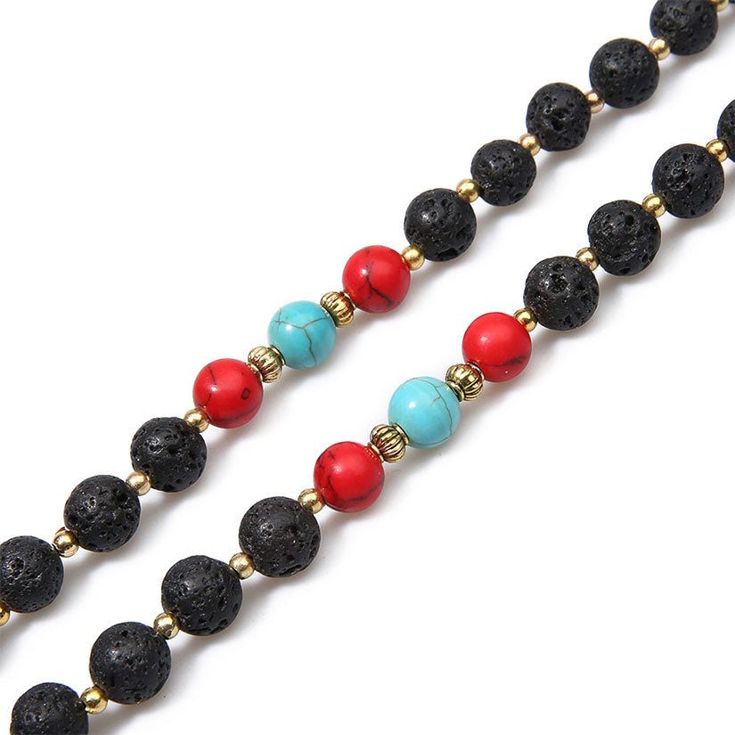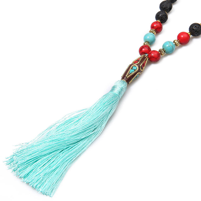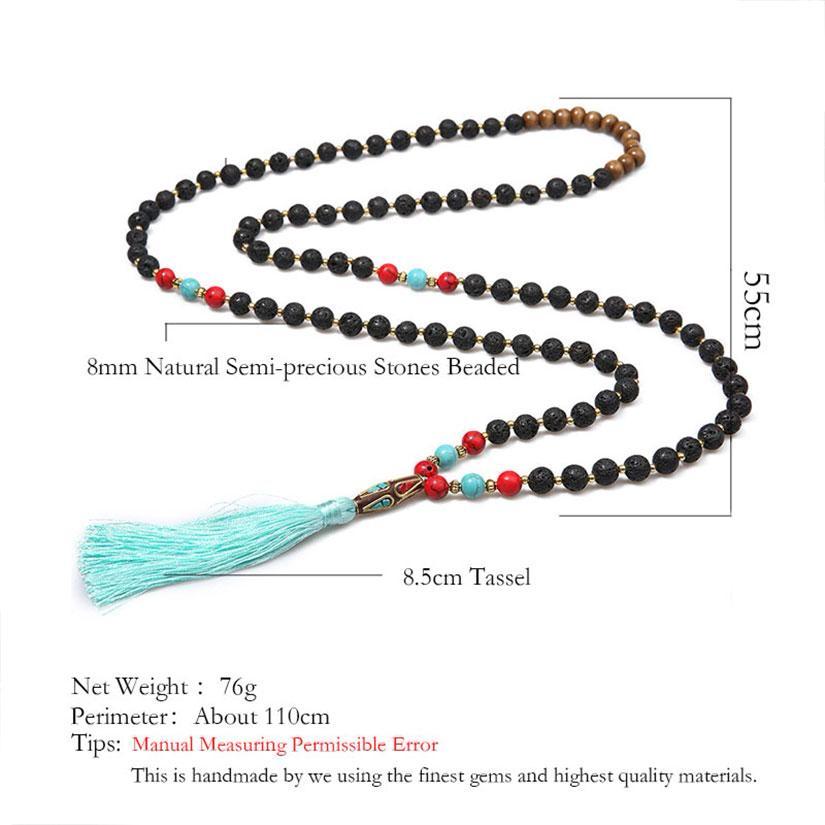 Strand Tassel Volcanic stone /Turquoise Long Necklace Lava: Lava stone is a stone of grounding, strength and clarity. It's believed the stone was used when entering battle as it's thought...
