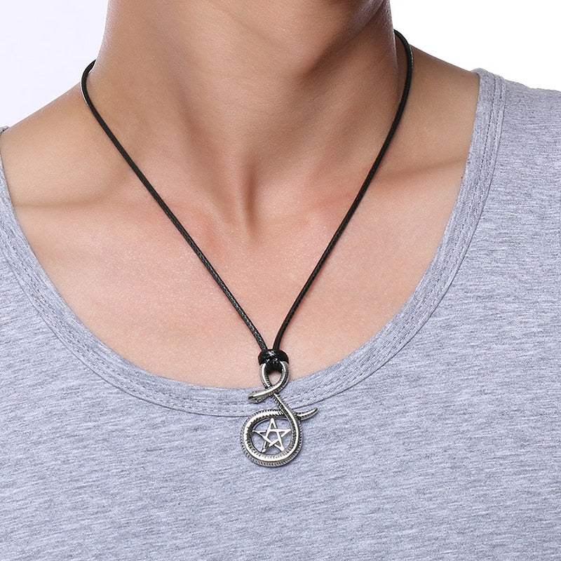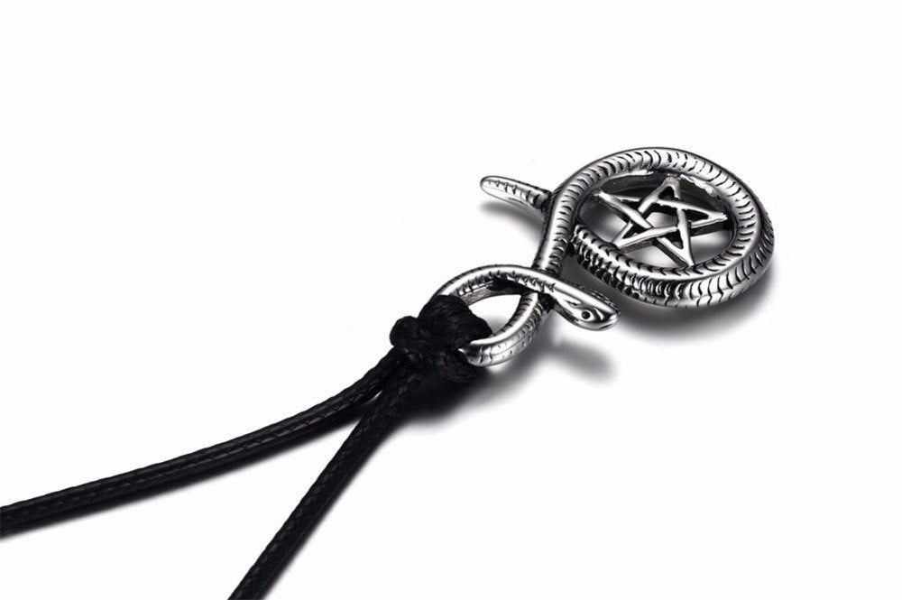 The Snake Pentagram Necklace combines the snake with the pentacle into a symbol that will protect you, help you shed your past and give you strength to overcome new challenges.Perfect...