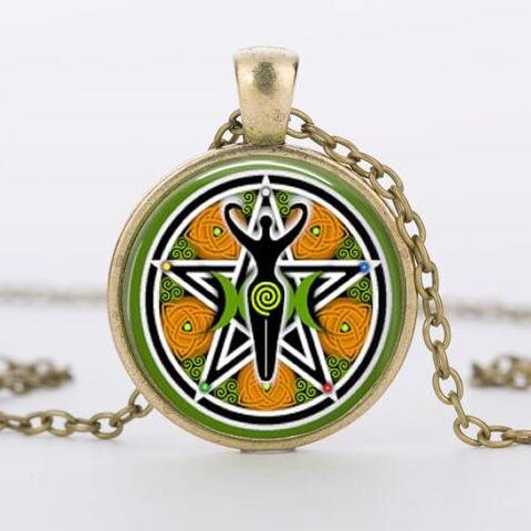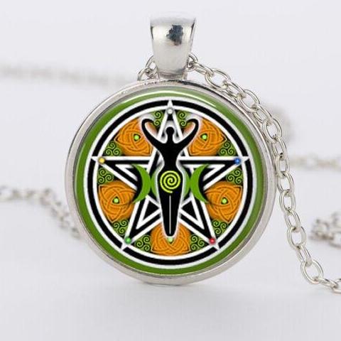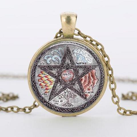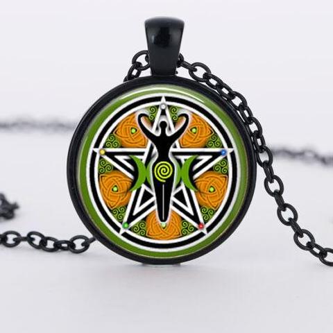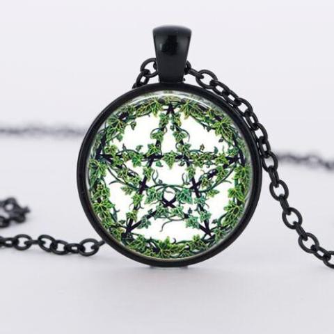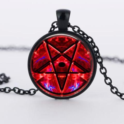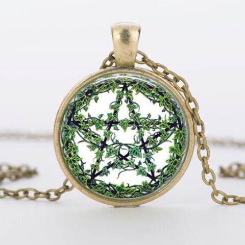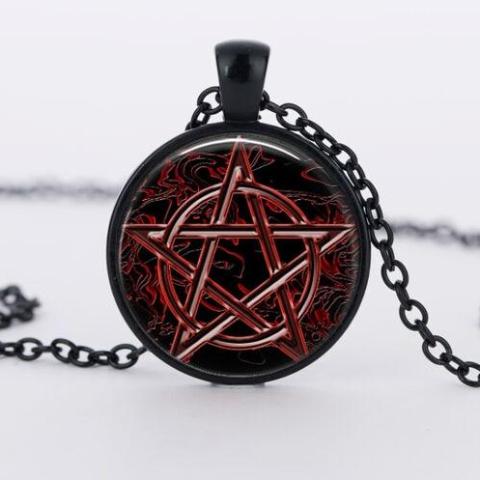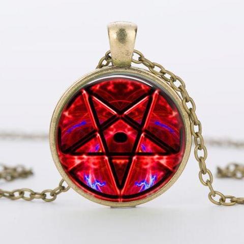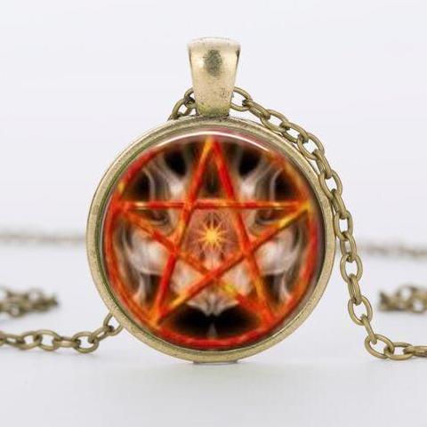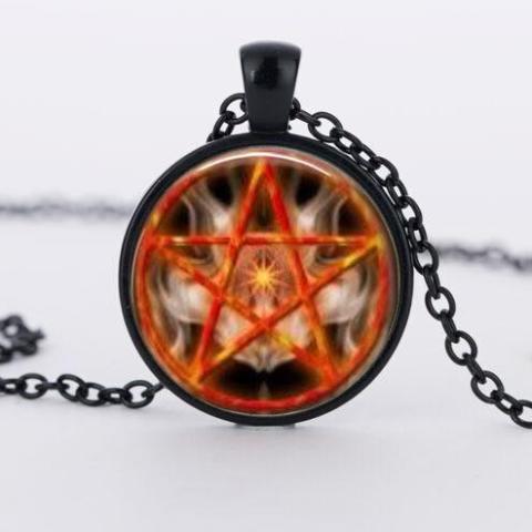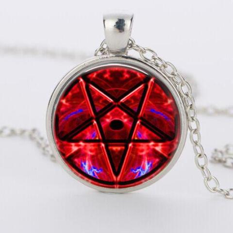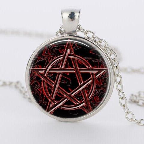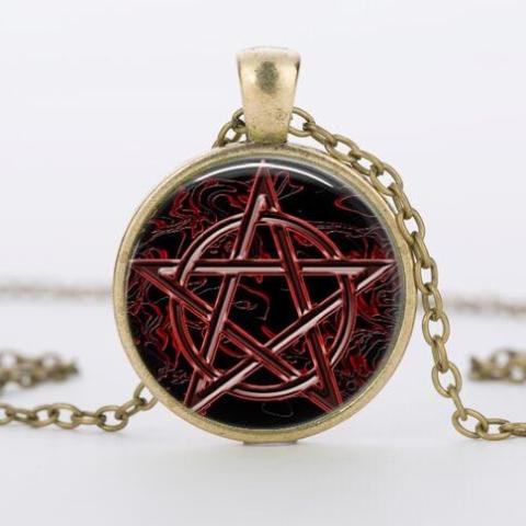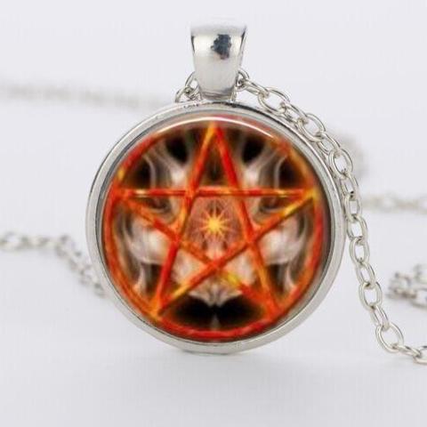 The Pentagram witchcraft NecklaceMetals Type: Zinc AlloyChain Type: Link ChainMaterial: GlassPendant Size: 25mm