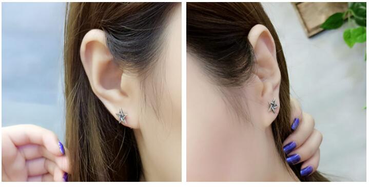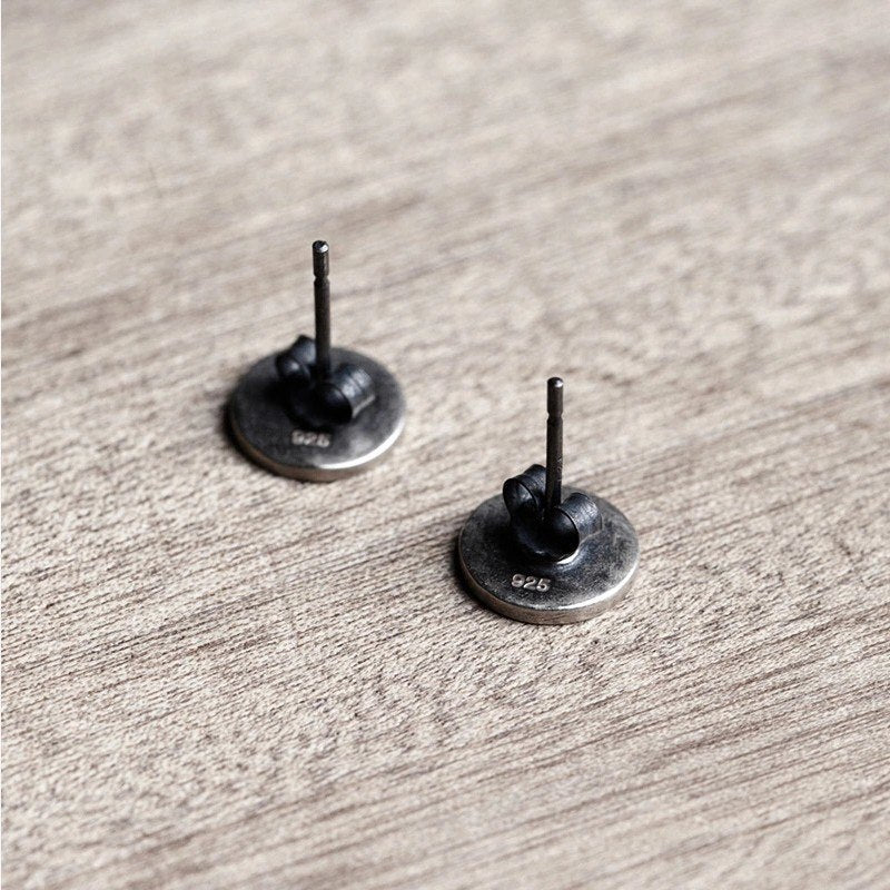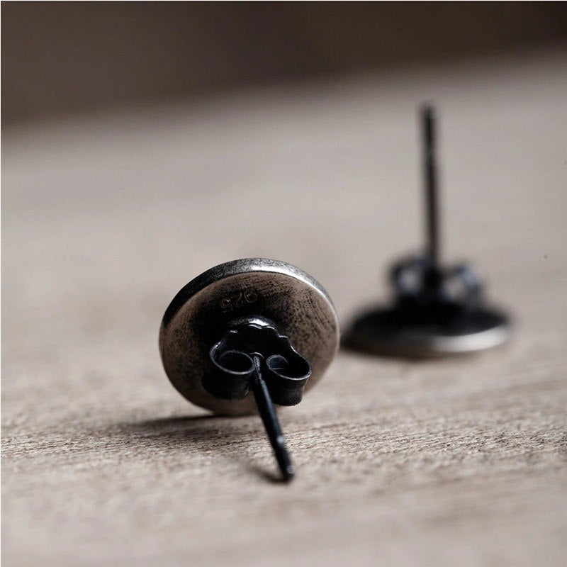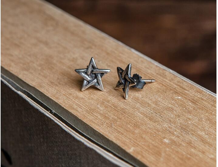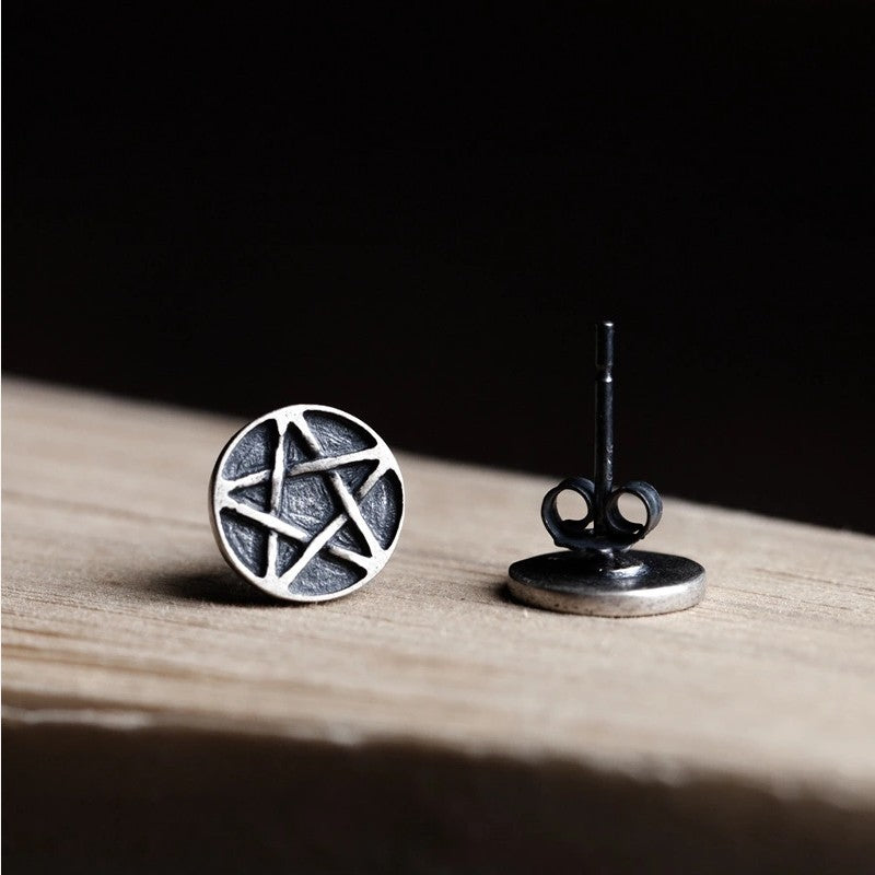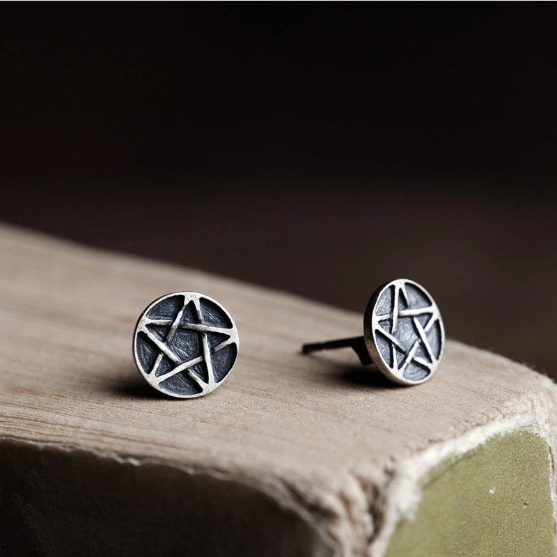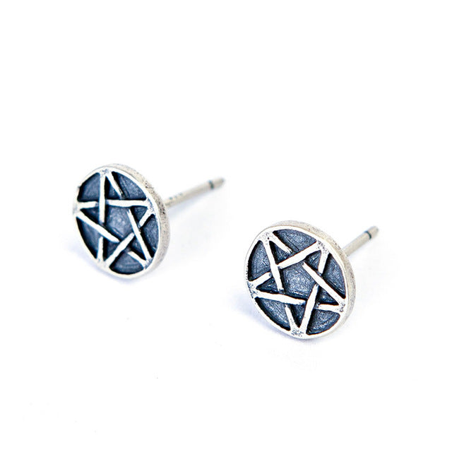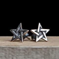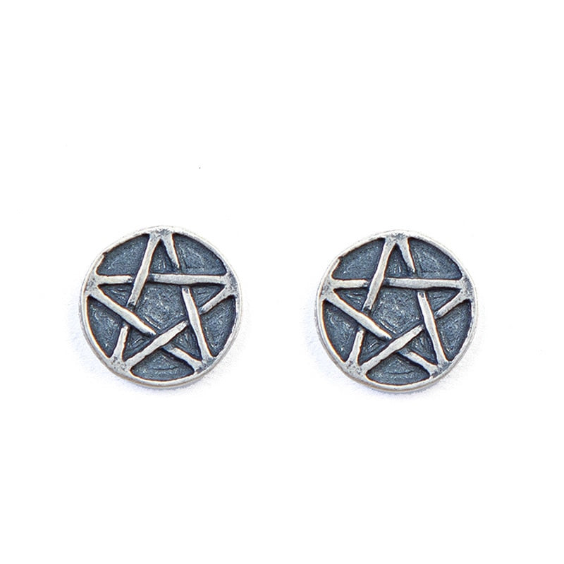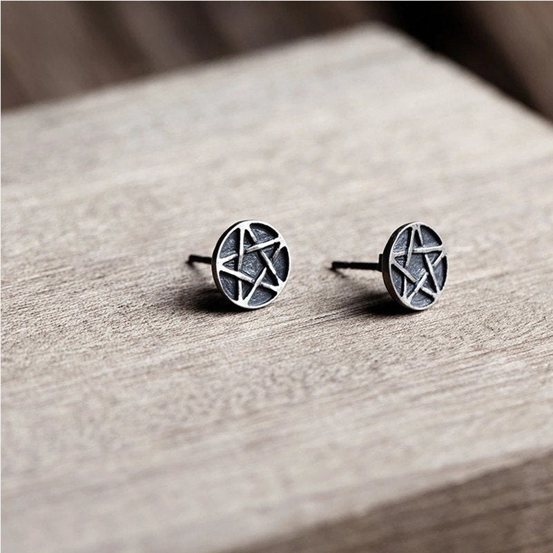 Five Pointed Pentagram Silver Stud Earrings - Exquisitely crafted with high quality 925 silver and enhanced with black tones which brings out the beautiful embossed ethnic detailing. It is a great emblem...