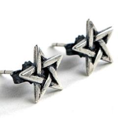 Five Pointed Pentacle Pentagram Silver Stud Earrings - Exquisitely crafted with high quality 925 silver and enhanced with black tones which brings out the beautiful embossed ethnic detailing. It is a great...