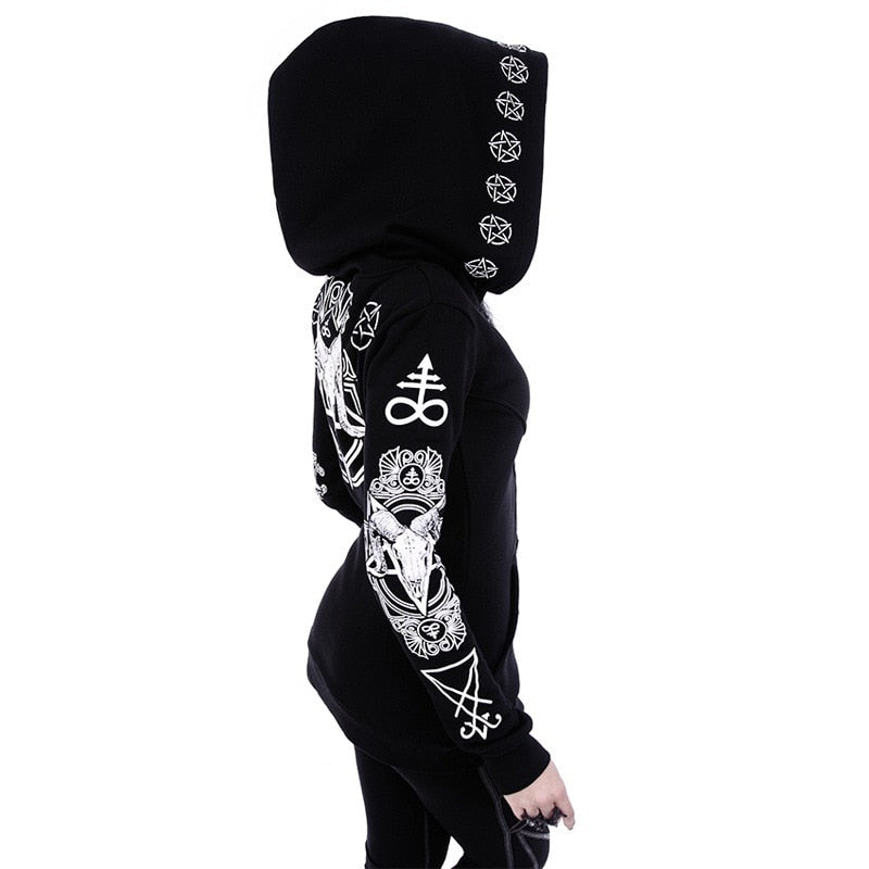 Woman Gothic Sigil Of Satan Goat Head Zipper Plus Size Sweatshirt Material: Cotton Blend,PolyesterFabric Type: Cotton