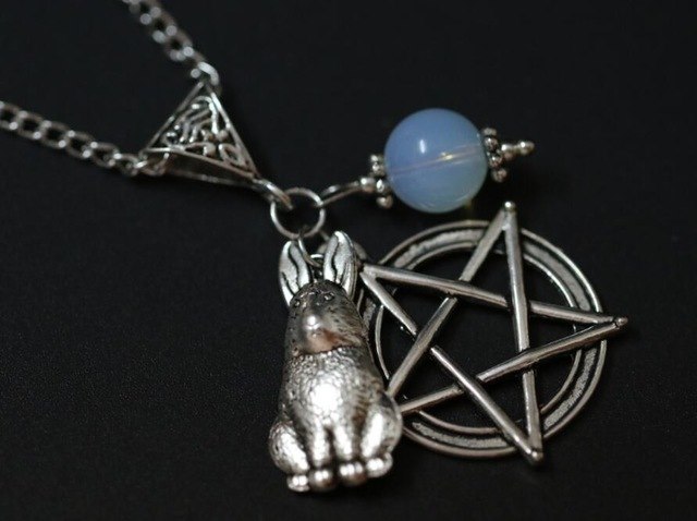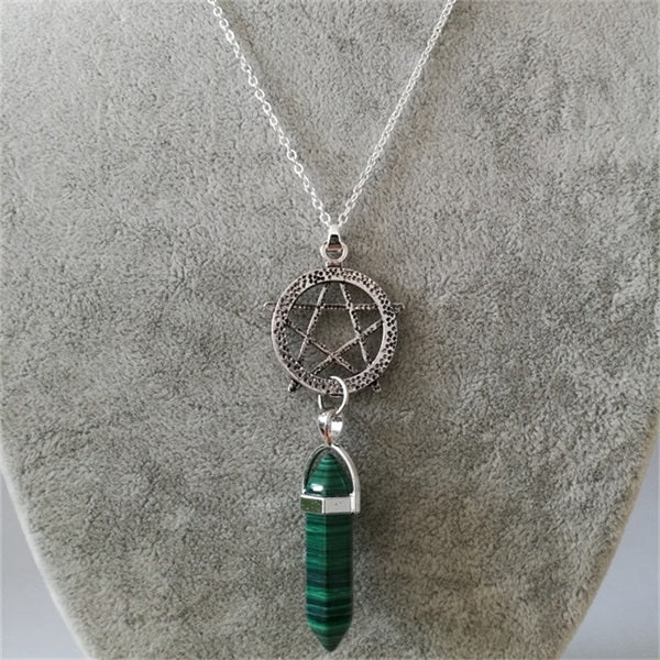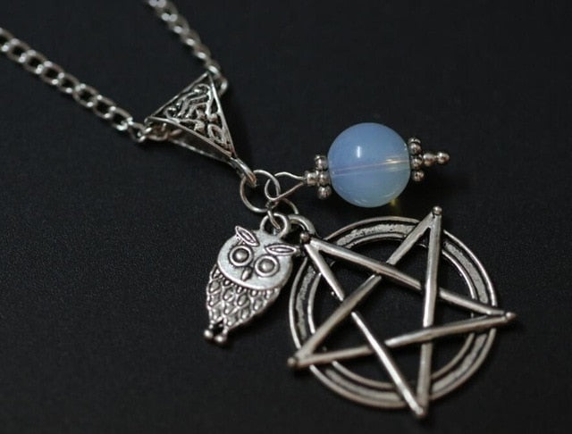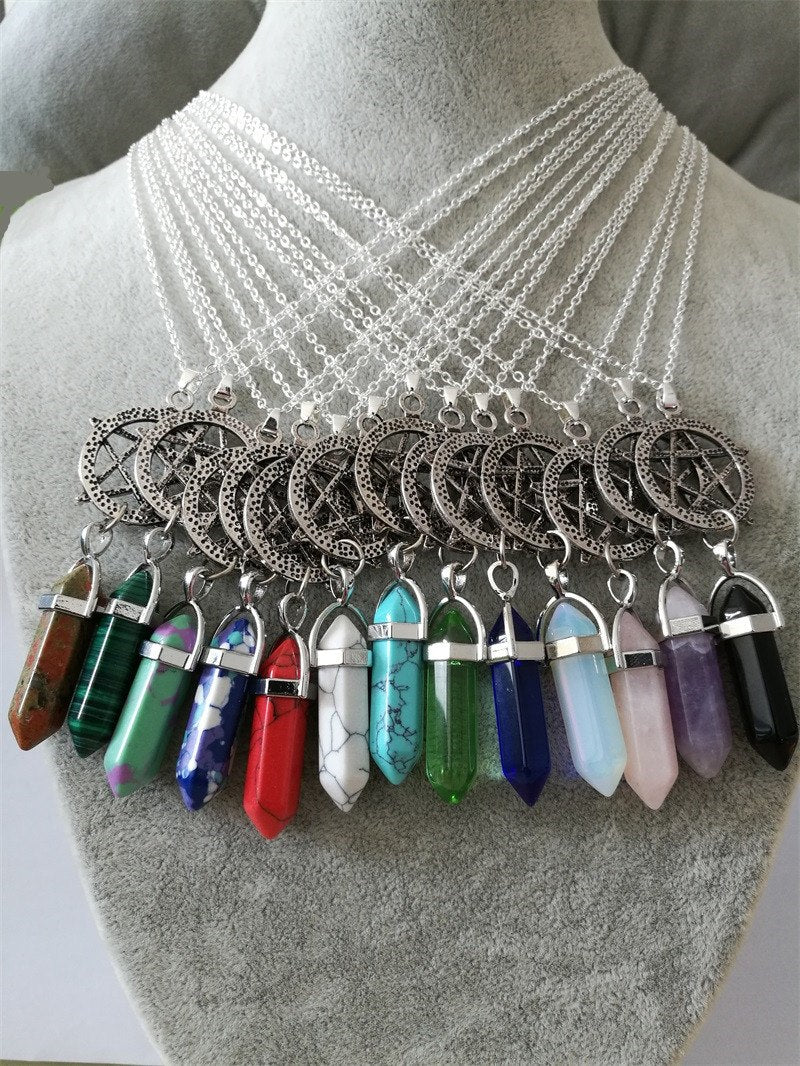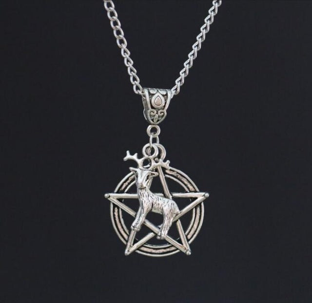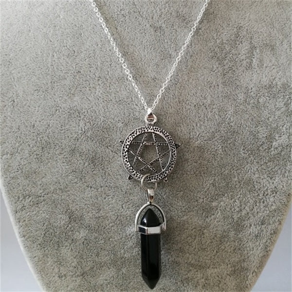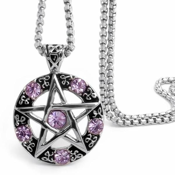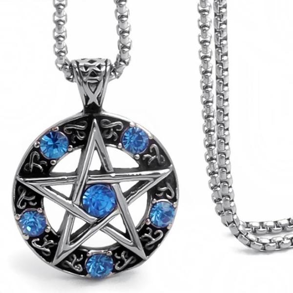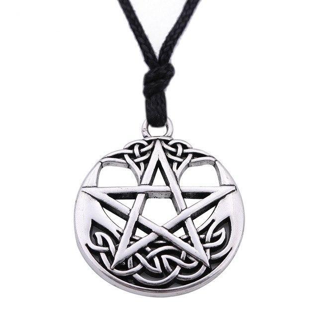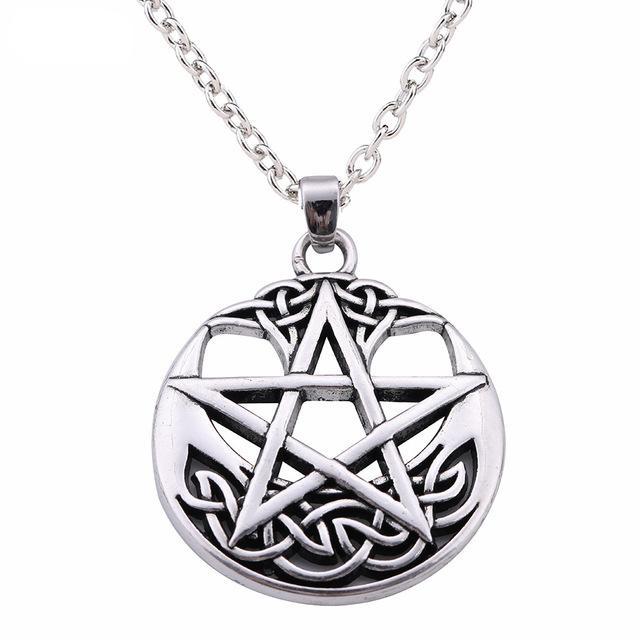 Double Pentagram Wiccan Pentacle Necklace Metals Type: Zinc AlloyPendant Size: 25*20 mmLength: 55 cm + 5 cm extended chain (adjustable)