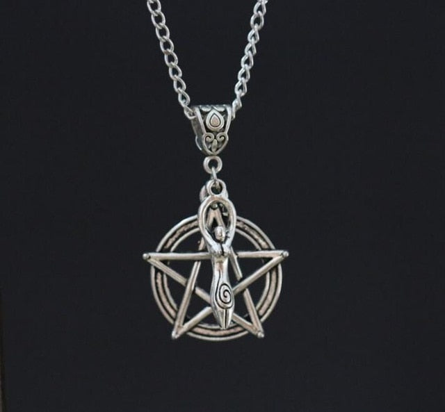 Pentacle Pentagram & Fertility Goddess NecklaceMaterial: Zinc AlloyChain Type: Link ChainLength: 60CM