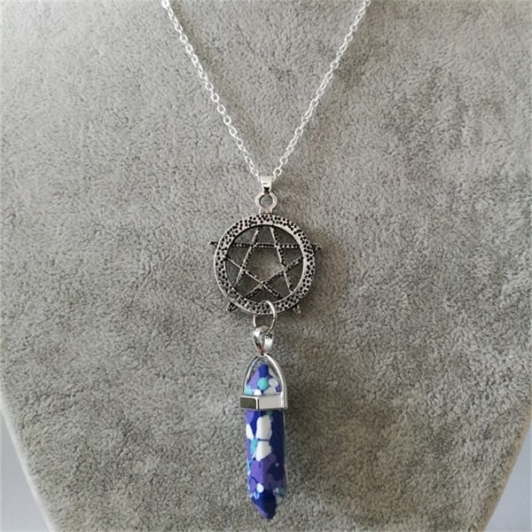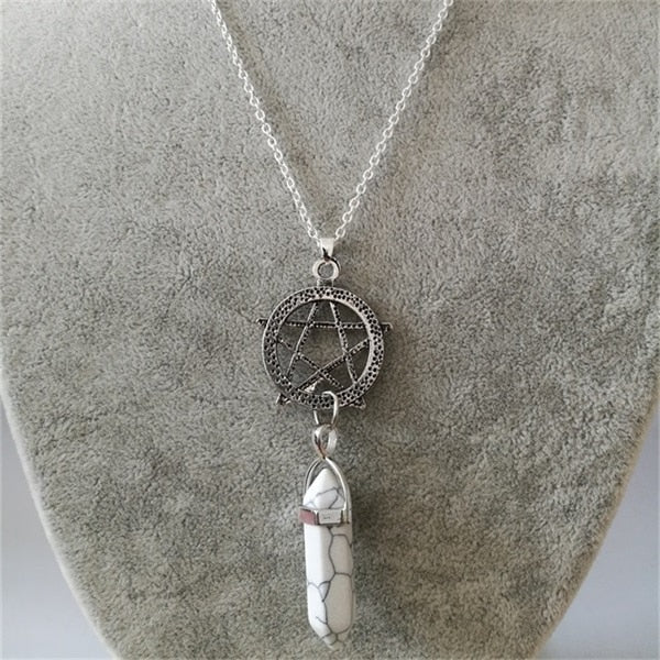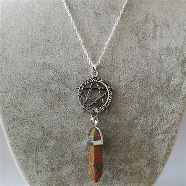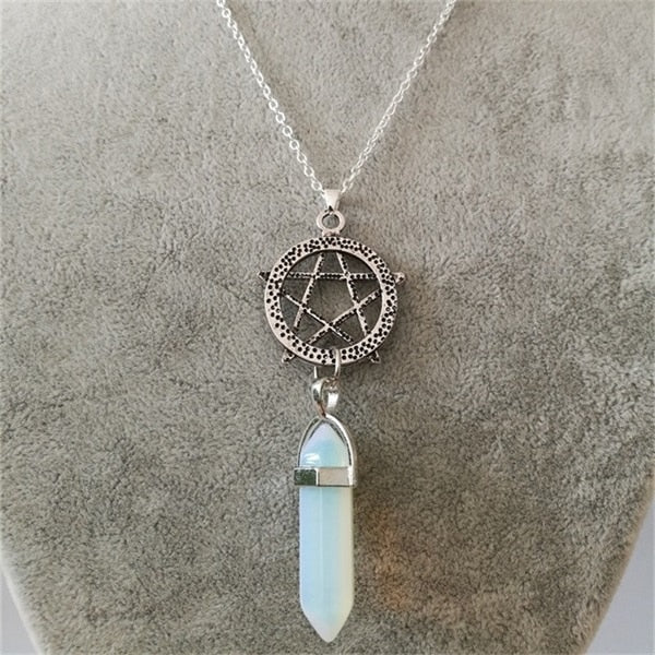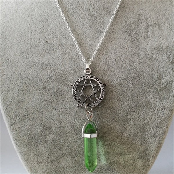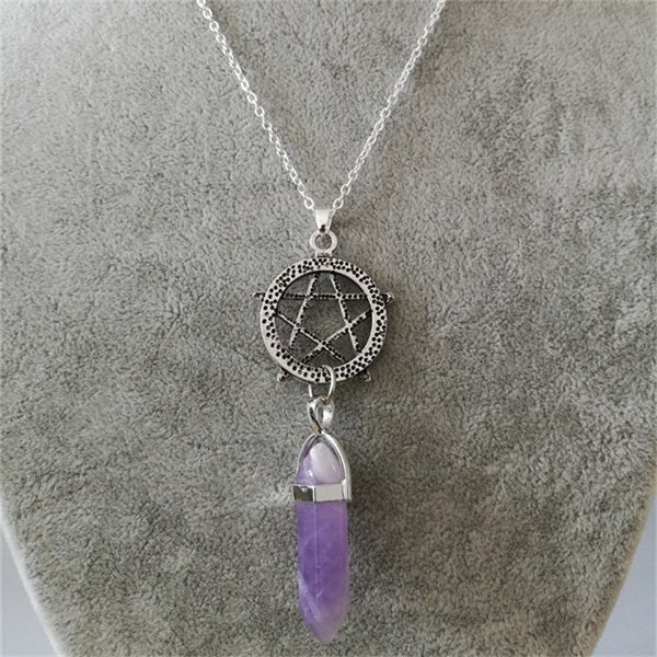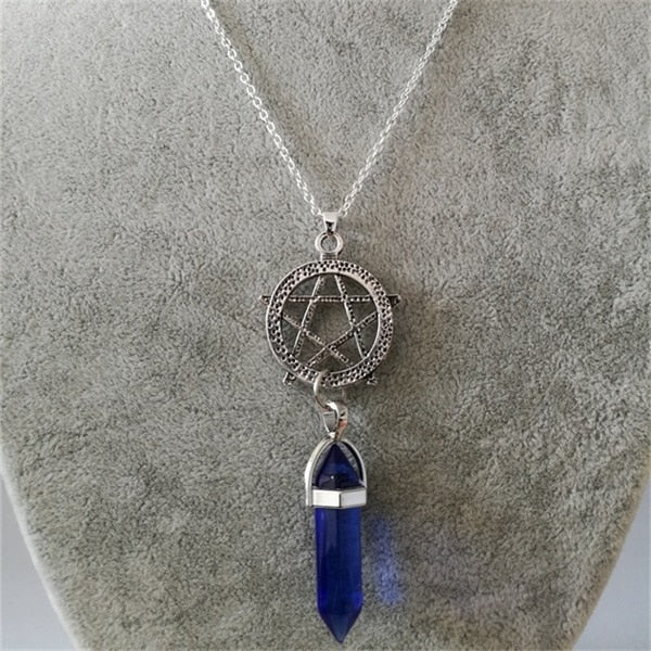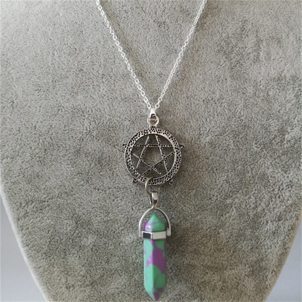 Handmade Crystal Pentagram Necklace Pendant Size: 18inChain Type: Link ChainMetals Type: Zinc AlloyMetals Type: Silver Plated