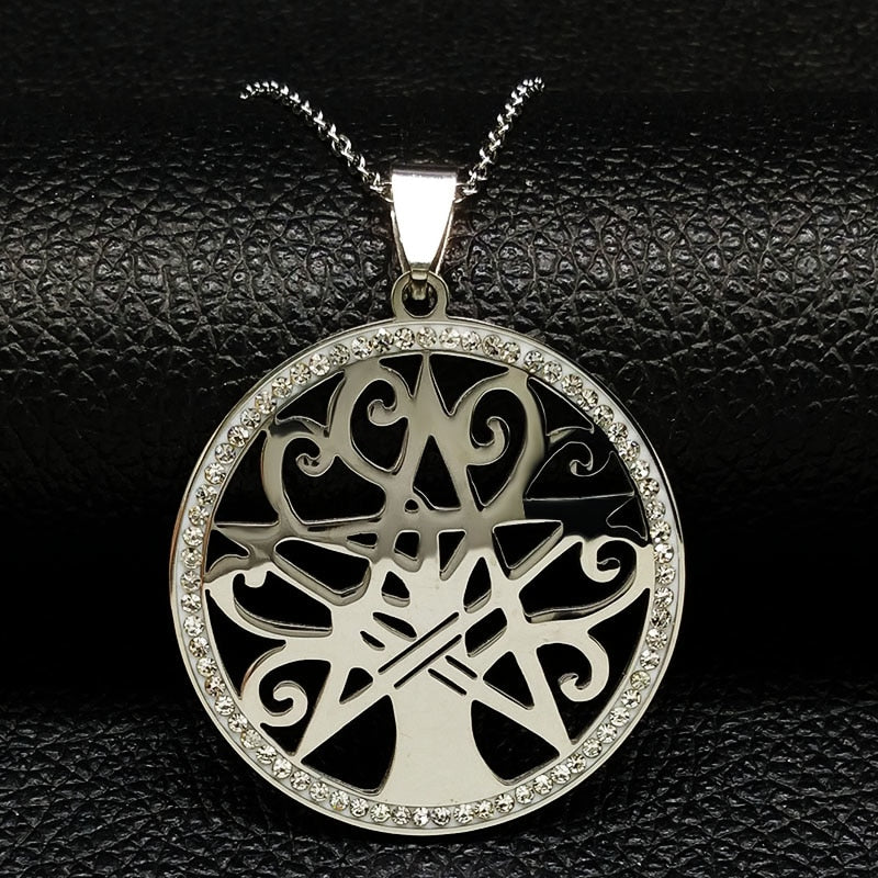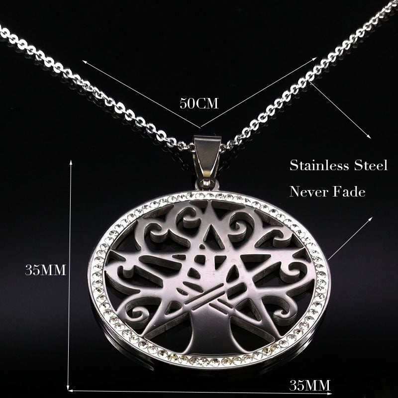 Wicca Tree of Life Pentagram NecklaceMetals Type: Stainless SteelMaterial: CrystalPendant Size: 35mmLength: 50CM