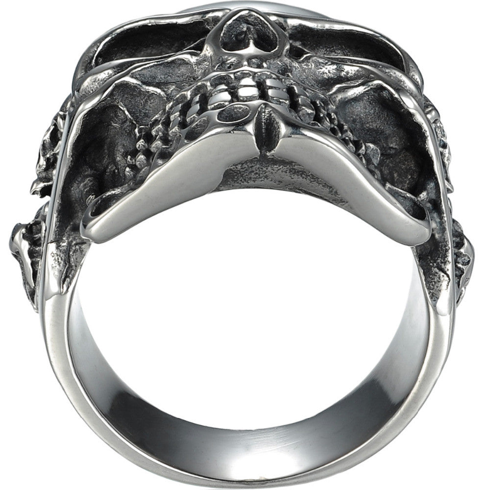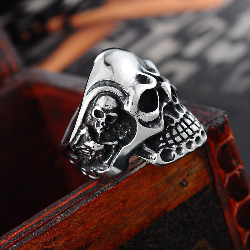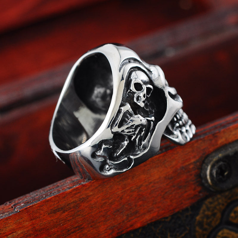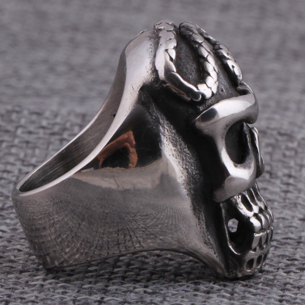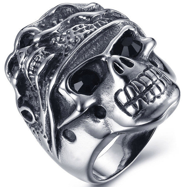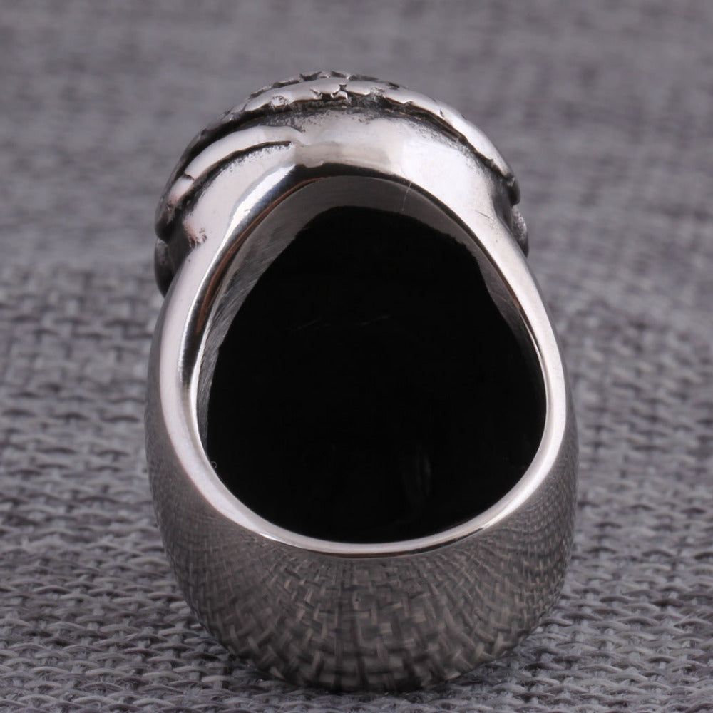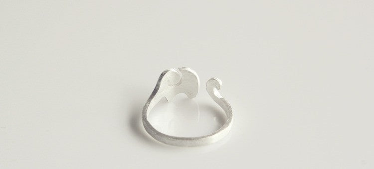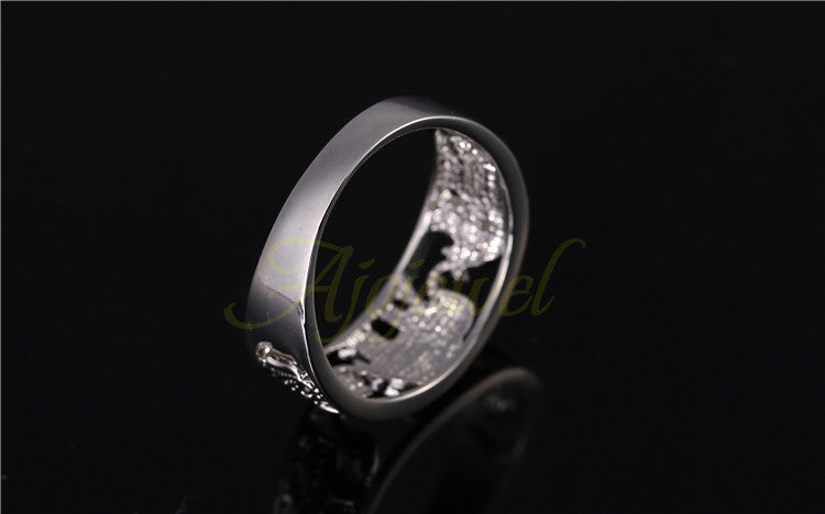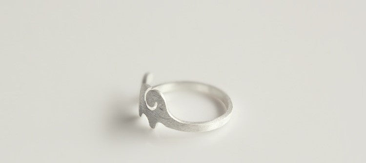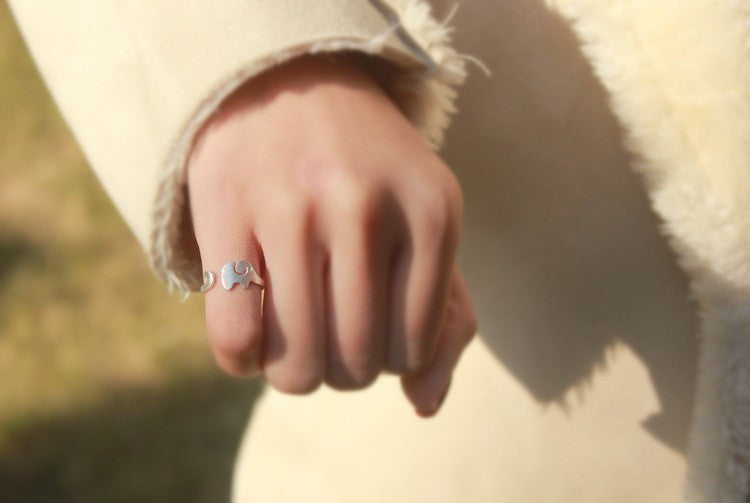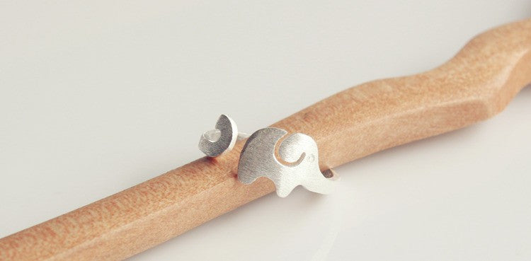Vintage Elephant Ring, 18K White Gold Plated, Black Rhinestones