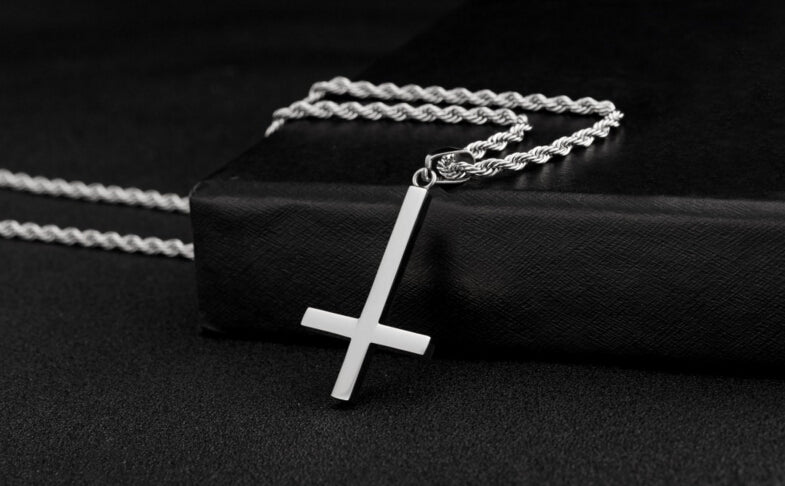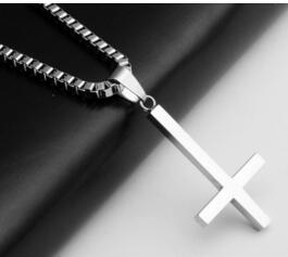316L Stainless Steel Inverted Cross Pendant Necklace Metals Type: Titanium SteelLength: 70cm