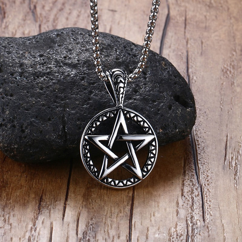 Satanic Wiccan Pentacle Necklace 316L Stainless Steel Chain Pendant Size: 30mm x 45.5mmChain: 50/60cm