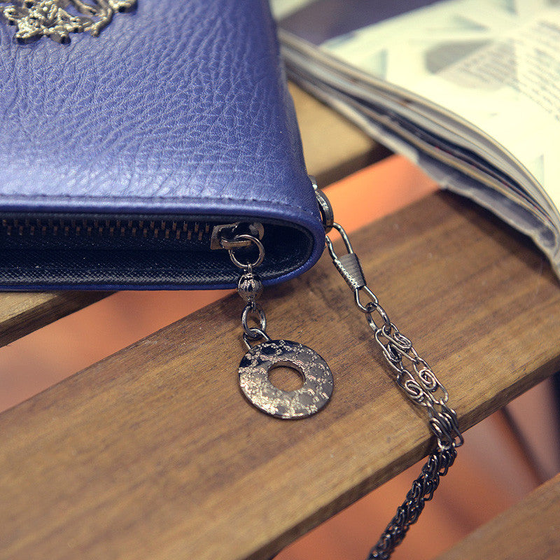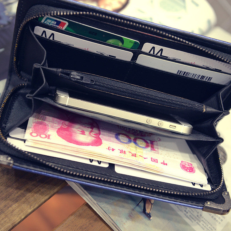 Item size: 11x21x3Material Composition: puLining Material: PolyesterInterior: Interior Slot Pocket, Note Compartment, Card Holder, Zipper Poucht