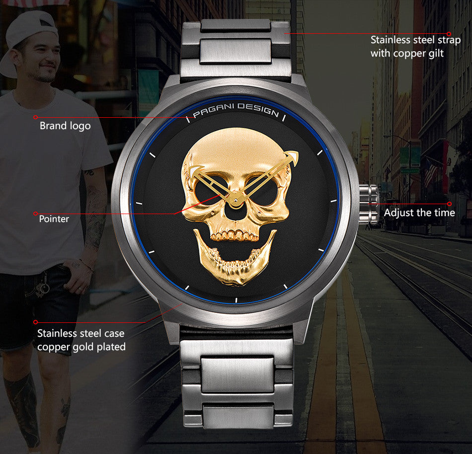 Punk 3D Skull Personality Retro Fashion Men's Watches Water Resistant (Depth: 3Bar) , Shock Resistant watch length : about 245mmDail diameter: about 50mmBand Length: 23.5cmBand Width: 22mmDial Diameter: 48.7mmQuartz Wrist watch Case Shape: RoundClasp Type:...