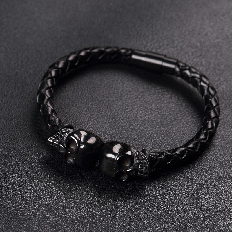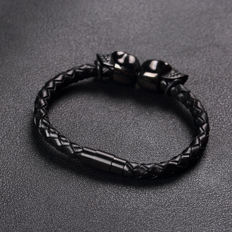 Meaeguet Punk Rock Mens Black Durable Leather Bracelet. Gothic Skull styleMetals Type: Stainless SteelChain Type: Rope ChainClasp Type: LobsterMaterial: LeatherLength: 21.8CM
