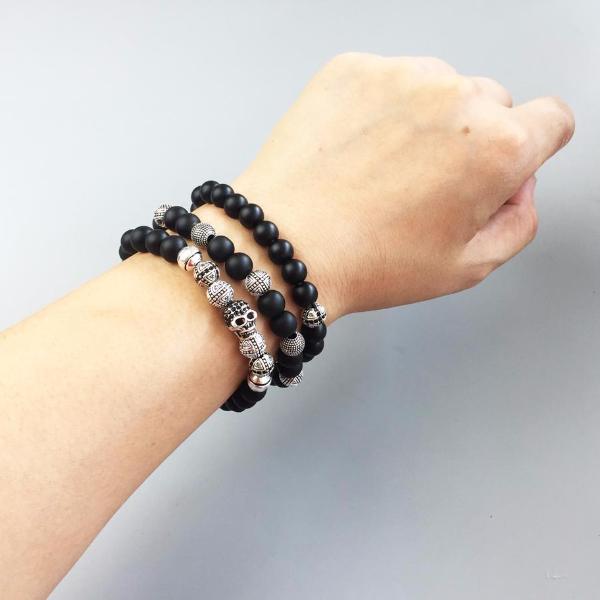 Item Type: BraceletsMetals Type: Zinc AlloyStone: Lava stone/Natural StoneShape: SkullWeight: 21gsize: 19 cm and stretchy