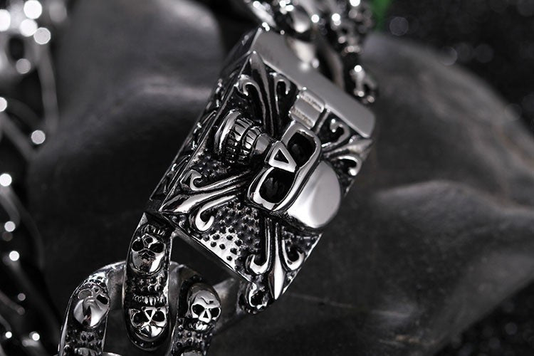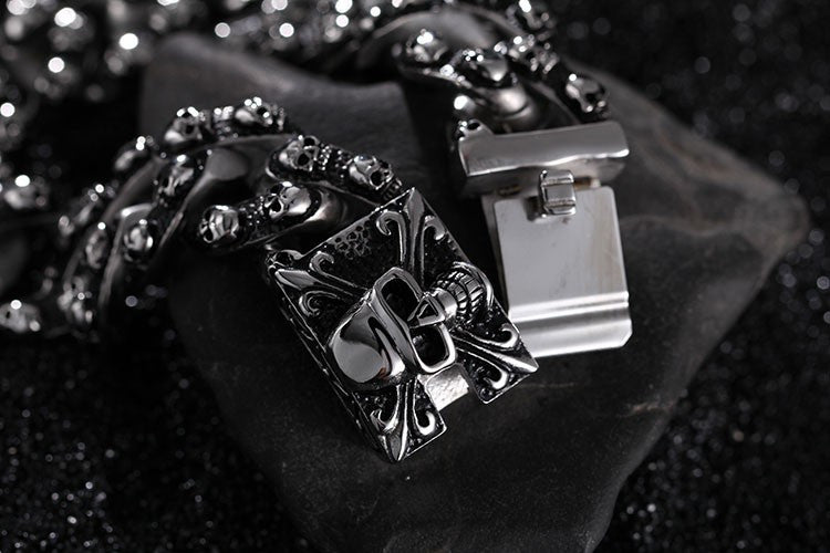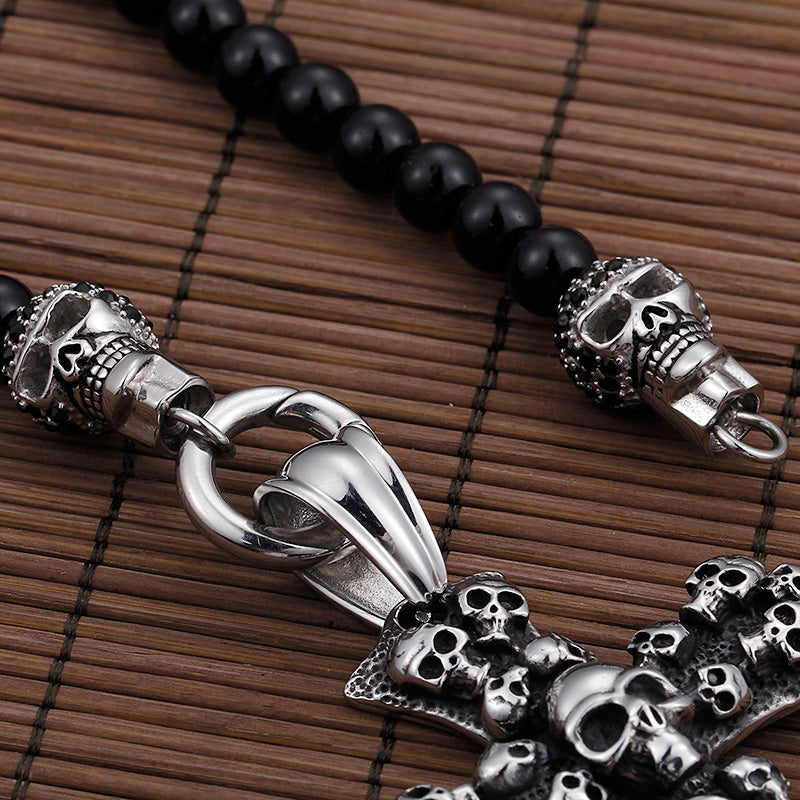 The powerful Black Skull Pendant Necklace.Necklace Type: Pendant NecklacesPendant Size: 64*50MMMetals Type: Stainless SteelWeight: 105GLength: 50CMColor: Black