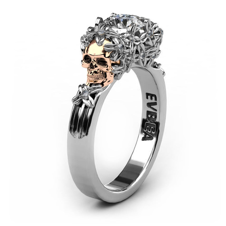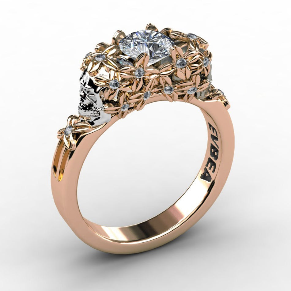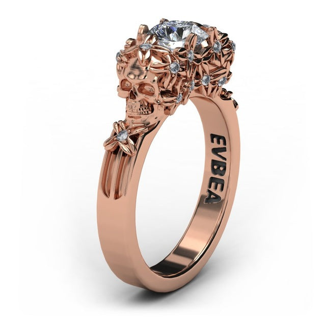 Unique Engagement Skull Ring - Unique Rose Gold Big Zircon Diamond