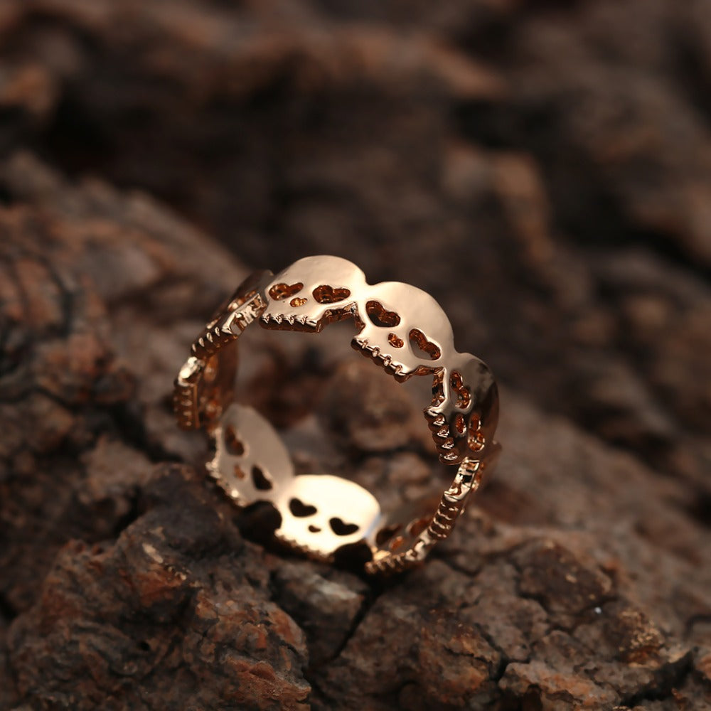 Unique Engagement Skull Ring - Unique Rose Gold Big Zircon DiamondThe skulls on either side of the diamond have a patina on them to give them a modeled old world...